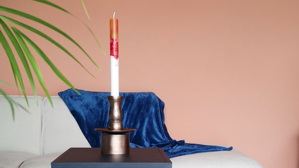 We hebben een 10tal mooie kaarsen kunnen maken die we op de Expositie van ons afstuderen hebben kunnen laten branden. Natuurlijk hebben we de aller mooiste exemplaren zelf behouden, zoals de kaars op bovenstaande foto!