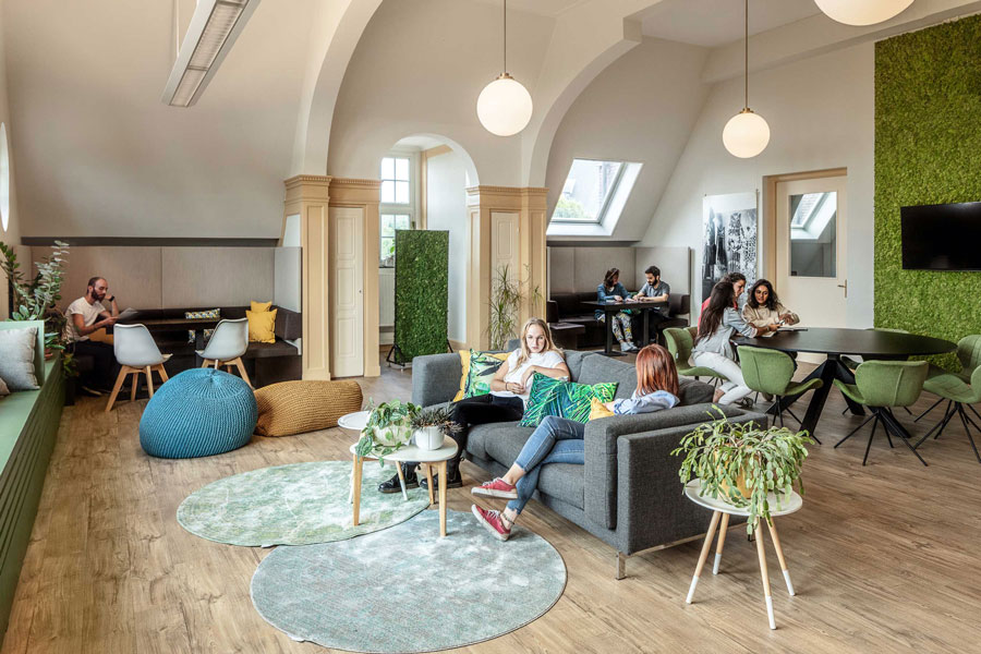 De vormgeving van een gezamenlijke ruimte erg belangrijk om door het gebouw heen meer samenhang te krijgen. Deze ruimte is gecreëerd voor ontspanning. Verschillende aspecten zijn hiervoor ingezet; Indeling van de ruimte, zitmogelijkheden, daglicht en groene wanden.