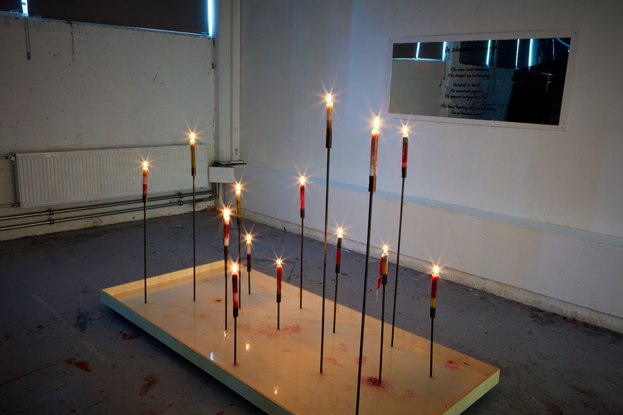 Ons dagelijks leven wordt bepaald door het ritme van de maatschappij. Waar is de rust, het besef dat je leeft? Laten we weer even terugkomen naar het heden; Niet langer met je gedachten vastzitten in de toekomst en in het verleden. In deze installatie staat elke kaars symbool voor samenzijn; Een speciaal moment om te delen of om aan terug te denken.